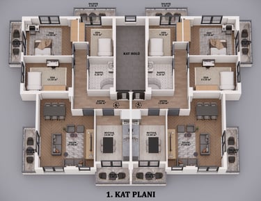15 m² Depo Alanı: Her daireye özel, ek depo alanı imkanı ile pratik yaşam alanı sağlanır.
