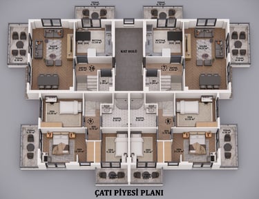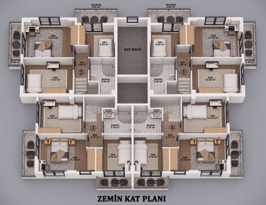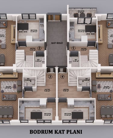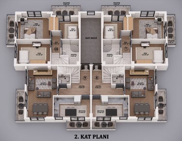 Projede 2 adet geniş 3+1 normal daire ve 2 adet 3+1 dubleks daire yer almakta. Her daire, ferah iç mekanlar, kaliteli malzeme kullanımı ve estetik mimarisiyle öne çıkıyor. Aile yaşamına uygun planı, sessiz komşuluk ortamı ve huzurlu atmosferiyle, hem oturum hem yatırım için ideal.